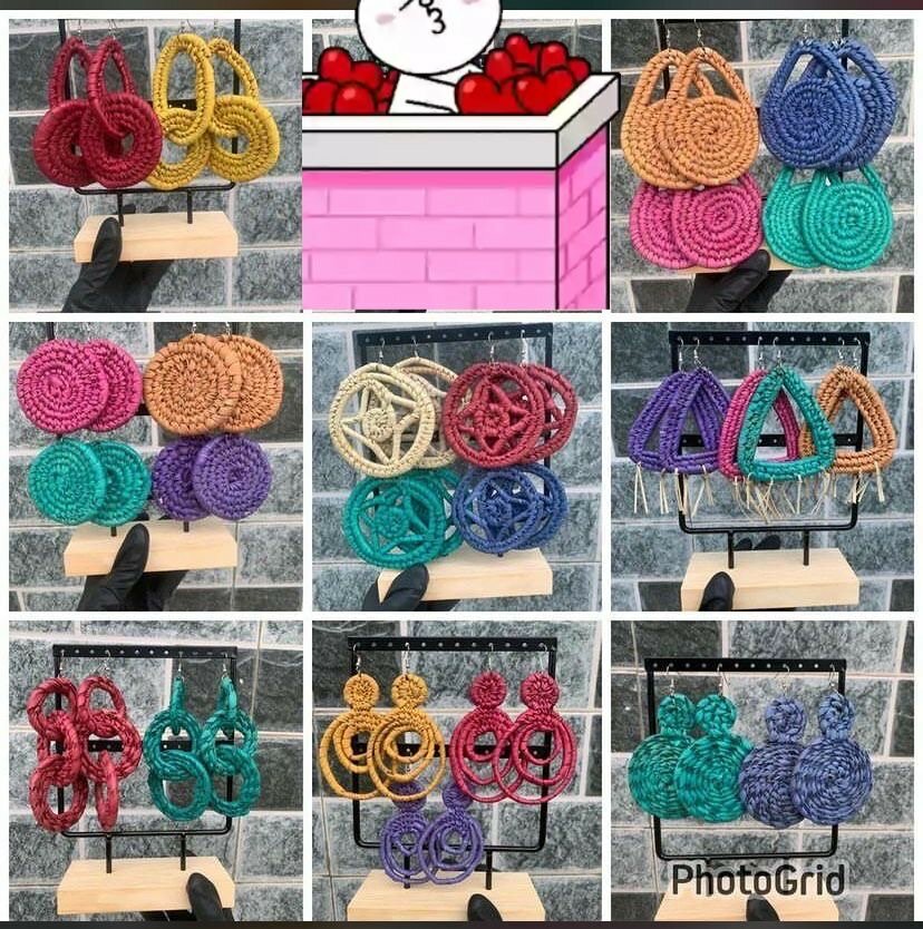 Raffia Earrings, Available in different colors and sizes Ranges from 20ghc -50ghc depending on the size.