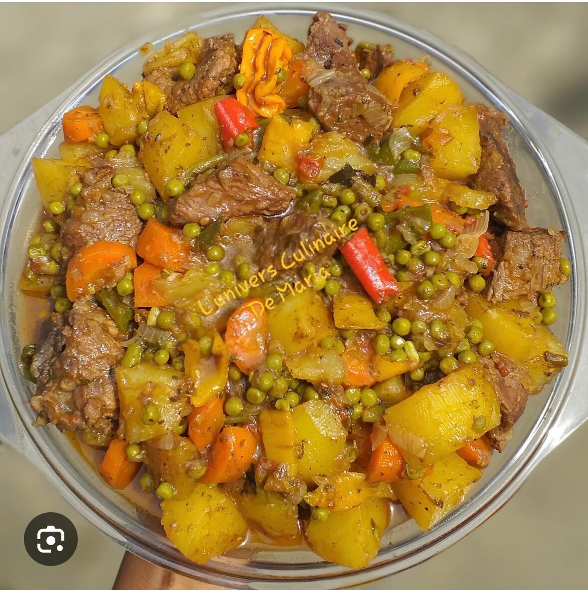 Découvrez notre ragoût épicé de bœuf, une explosion de saveurs avec des morceaux tendres de viande, pommes de terre, carottes et petits pois. Idéal pour un dîner chaleureux et réconfortant. Parfait pour les amateurs de cuisine épicée!
