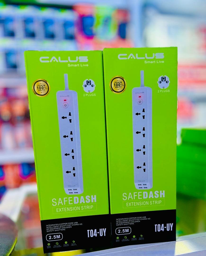 Barre d'alimentation Calus SafeDash avec 4 prises, interrupteur, et 4port USB . Câble de 2,5m pour une portée étendue. Idéale pour la maison ou le bureau. Sécurisée et fiable, elle protège vos appareils électriques.