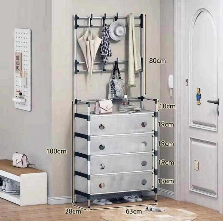 Organisez votre espace avec ce rangement mural multifonctionnel. Idéal pour les vêtements, chaussures et accessoires, il optimise votre intérieur avec style. Parfait pour les entrées modernes !