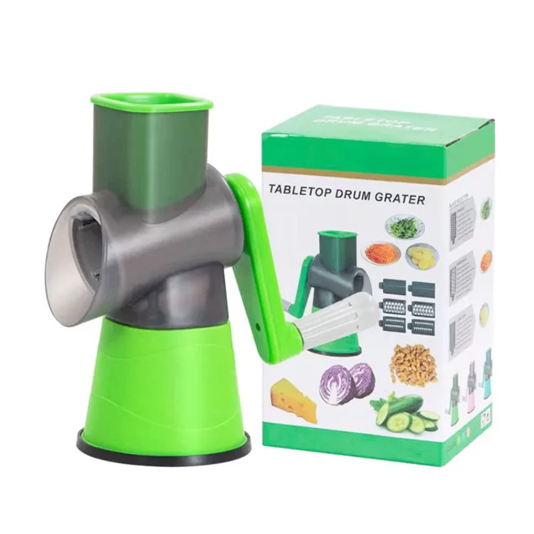 Optez pour cette râpe à tambour manuelle pour découper légumes et fromages facilement. Conçue pour un usage intuitif, elle rend la préparation des repas rapide et sécurisée. Idéale pour la cuisine moderne, elle offre une efficacité incomparable.