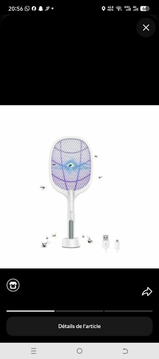 Éliminez les insectes avec efficacité grâce à cette raquette électrique anti-moustiques. Rechargeable par USB, elle est idéale pour la maison ou le camping. Dites adieu aux piqûres et profitez de vos soirées en toute tranquillité. Parfait pour l'intérieur comme l'extérieur.