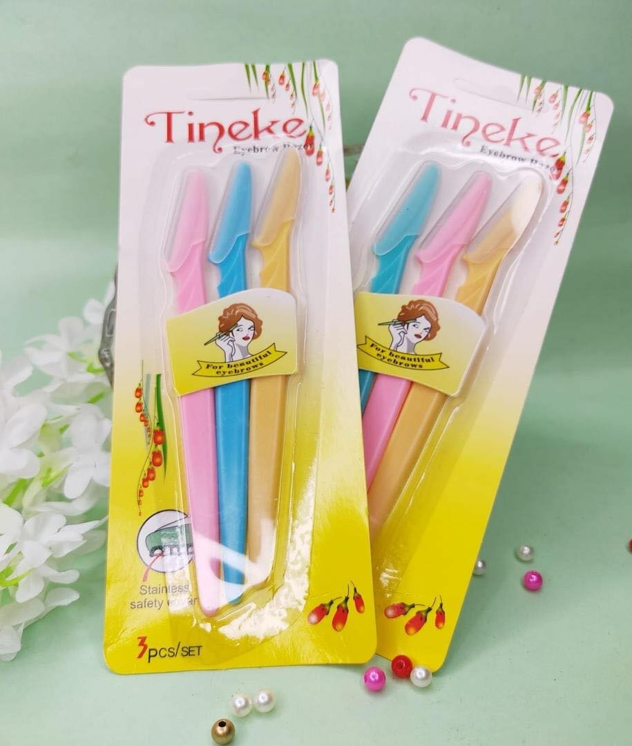 Rasoirs à sourcils Tineke, l'outil idéal pour une épilation précise et en douceur. Set de 3 pièces aux couleurs pastel, conçu pour une utilisation sécurisée et efficace. Parfait pour un usage à la maison ou en voyage.
