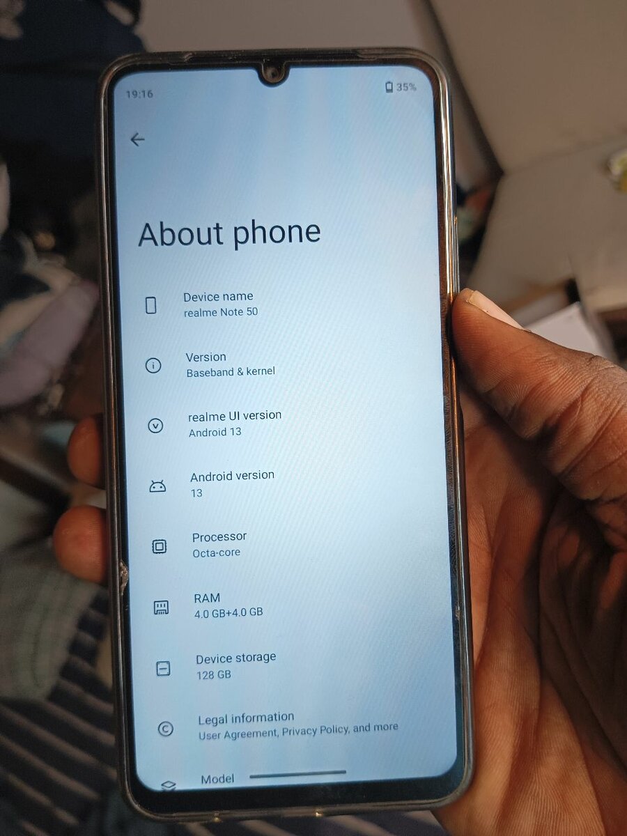 Realme note 50.. 128GB storage 4GB +4GB RAM Android version 14.. Price is 1400ghc Location =Cantonment Accra 0203132010