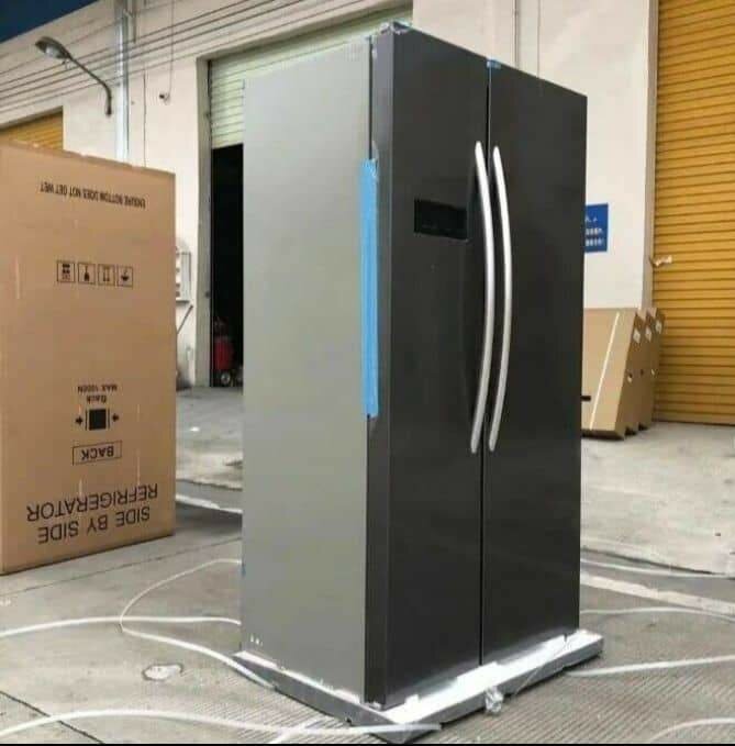 Réfrigérateur Américain moderne et élégant, parfait pour une cuisine spacieuse. Design noir et argent, grande capacité de stockage. Idéal pour les familles nombreuses ou pour ceux qui aiment cuisiner et stocker beaucoup de nourriture.