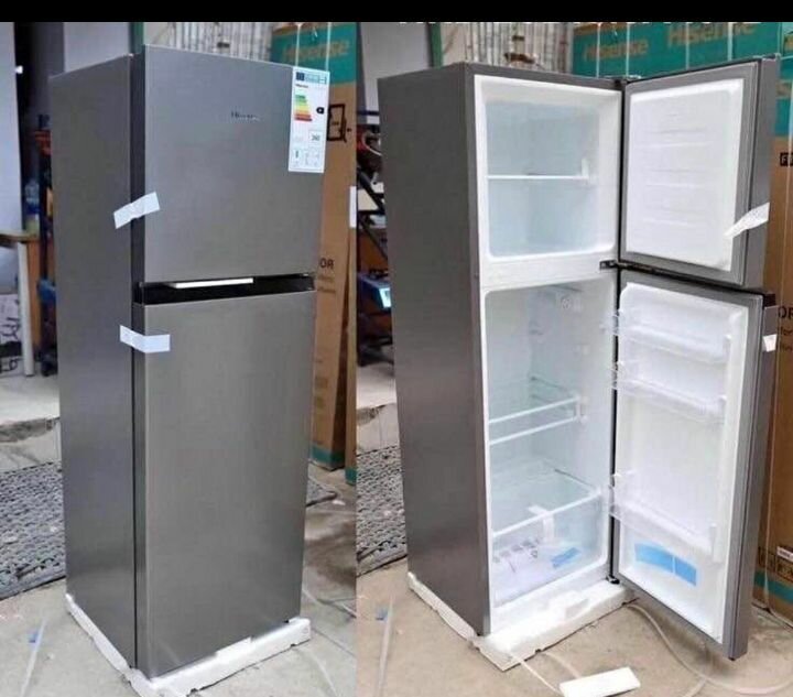 Réfrigérateur combiné moderne et élégant avec finition argent. Idéal pour une cuisine contemporaine. Fonctionnalités: congélateur, réglage de température. Conçu pour un usage domestique.