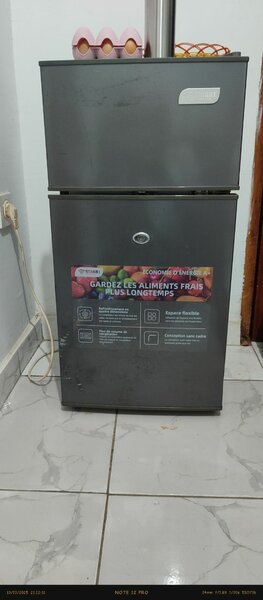 Ce réfrigérateur moderne et éco énergétique conserve vos aliments frais plus longtemps. Design élégant et flexible, il s'adapte à toutes les cuisines modernes. Idéal pour optimiser l'espace avec un rangement pratique et efficace.