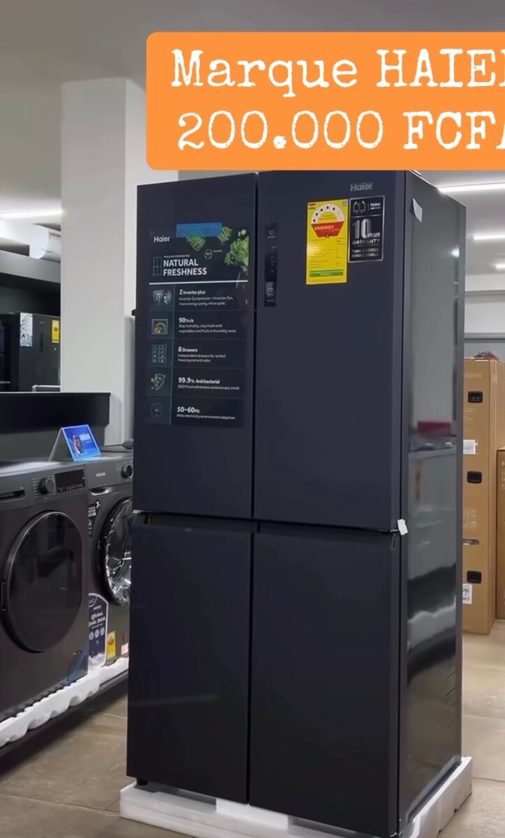 Découvrez le réfrigérateur Haier à 4 portes avec compresseur Inverter pour une fraîcheur naturelle. 8 tiroirs pour un rangement optimisé et technologie anti-bactérienne. Idéal pour conserver vos aliments frais et organisés. Parfait pour les familles.