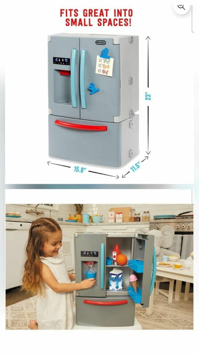 Réfrigérateur jouet idéal pour les espaces restreints. Stimule l'imagination des enfants et s'intègre facilement dans les petites cuisines de jeu. Permet des heures d'amusement et d'apprentissage. Dimensions compactes : 28" x 15.8" x 11.5".