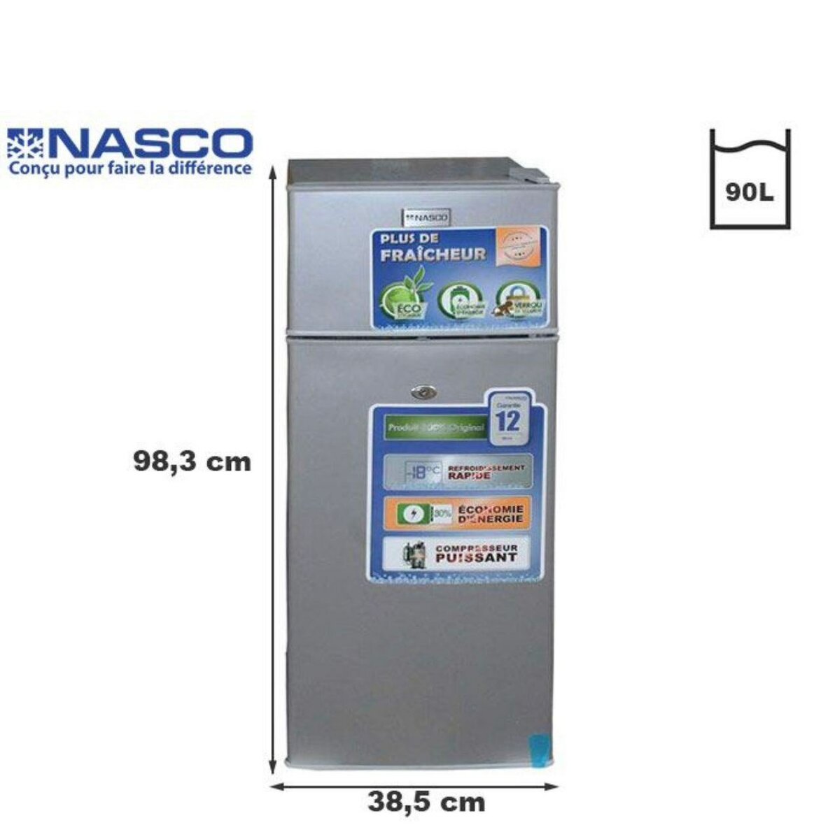 Découvrez le réfrigérateur compact Nasco de 90L. Parfait pour les petits espaces, ce modèle est éco-énergétique, avec un compresseur puissant pour une fraîcheur optimale. Idéal pour célibataires ou petites cuisines. Bénéficiez d'une solution de refroidissement rapide et efficace avec une consommation réduite d'énergie.