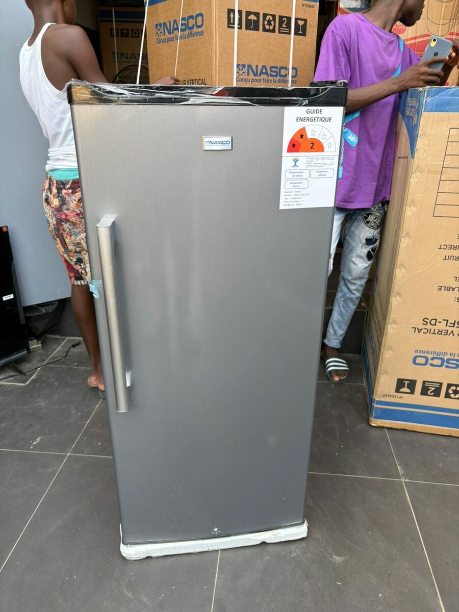 Découvrez le réfrigérateur NASCO à porte simple, idéal pour les petits espaces. Économique et pratique, il offre un stockage optimal pour vos aliments. Finition inoxydable et design élégant.
