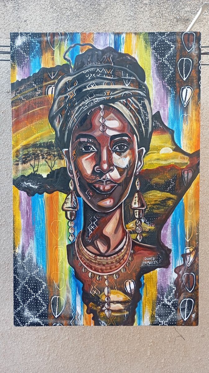 Décorez votre intérieur avec ce magnifique tableau représentant une femme africaine, riche en couleurs vibrantes et motifs ethniques. Idéal pour apporter une touche culturelle et chaleureuse à votre espace.