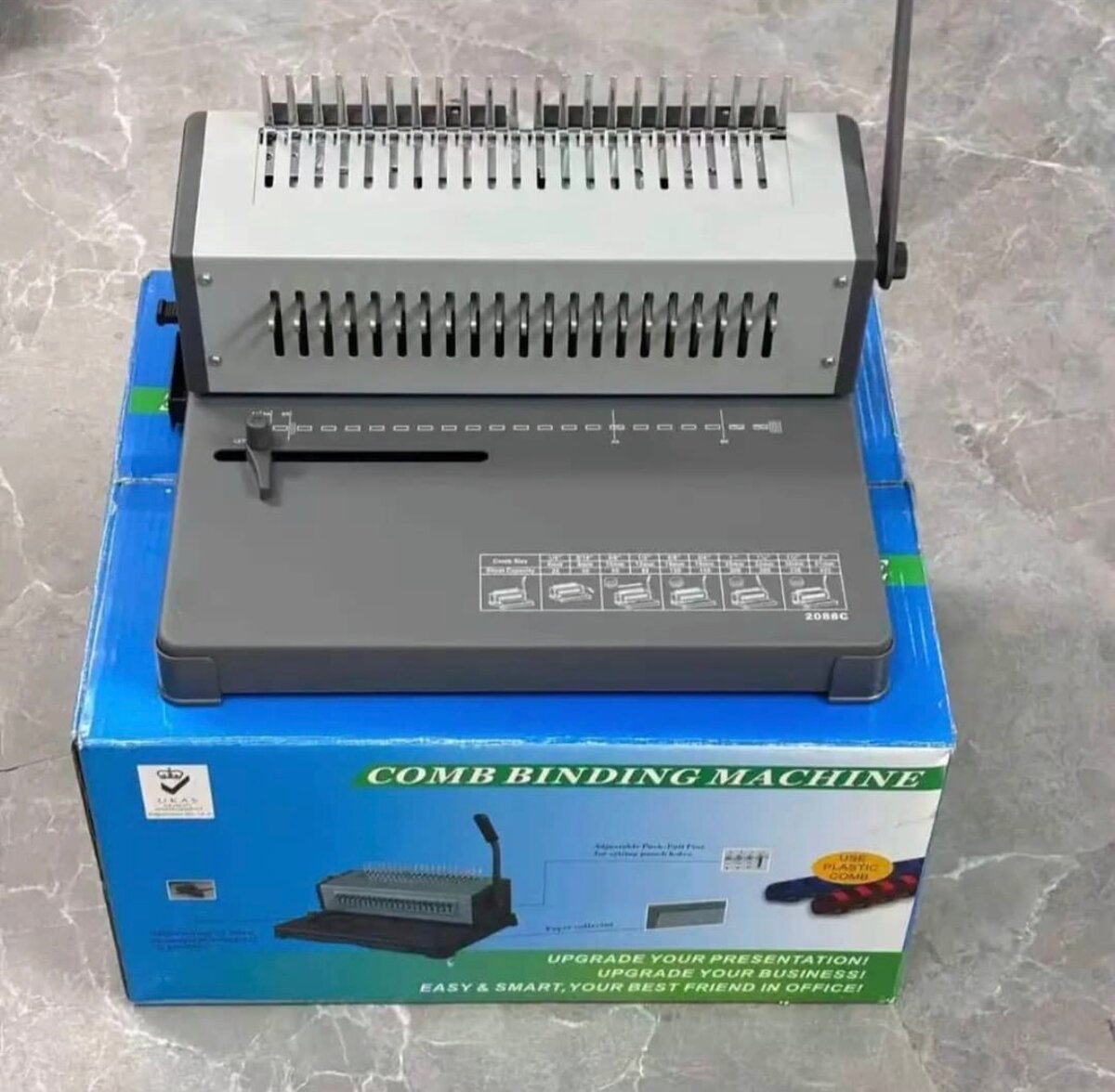 Machine à relier robuste idéale pour bureaux et présentations. Facilite l'assemblage de documents avec précision et élégance. Convient à tous types de papier.
