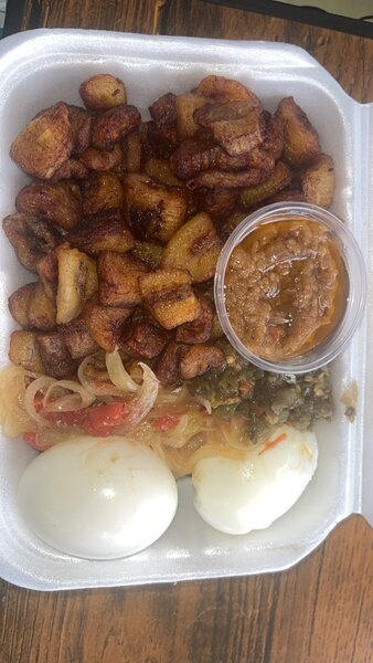 Découvrez un délicieux assortiment de plats africains, incluant le crabe attiéké et le poulet rôti avec des accompagnements savoureux. Idéal pour les amateurs de cuisine exotique.