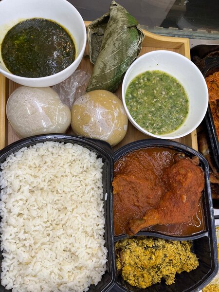 Savourez un délicieux mélange de plats africains épicés comprenant une sauce savoureuse et un ragoût riche, parfait pour un repas rapide et satisfaisant. Préparé avec des ingrédients frais, ce plat vous transporte au cœur de la tradition culinaire africaine. Idéal pour les amateurs de bonne cuisine épicée. Se déguste chaud, avec du riz ou du gari!