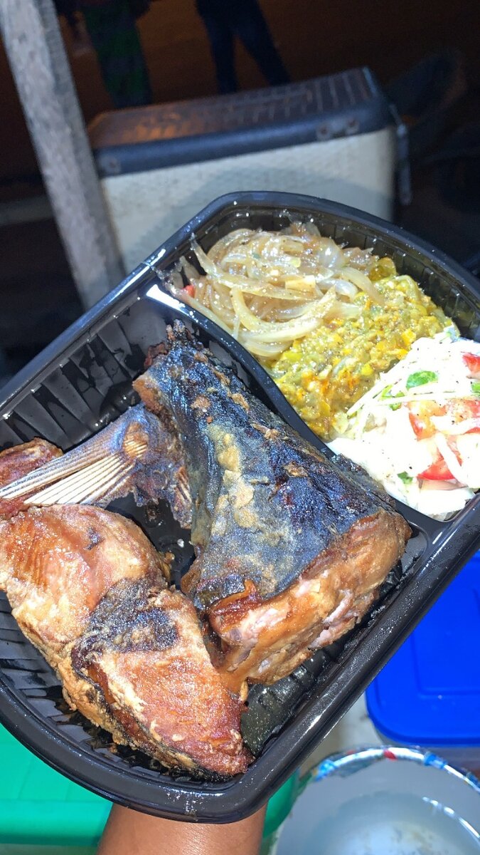 Savourez ce délicieux repas composé de poisson grillé, parfait pour un déjeuner ou un dîner gourmand. Accompagné d attieke