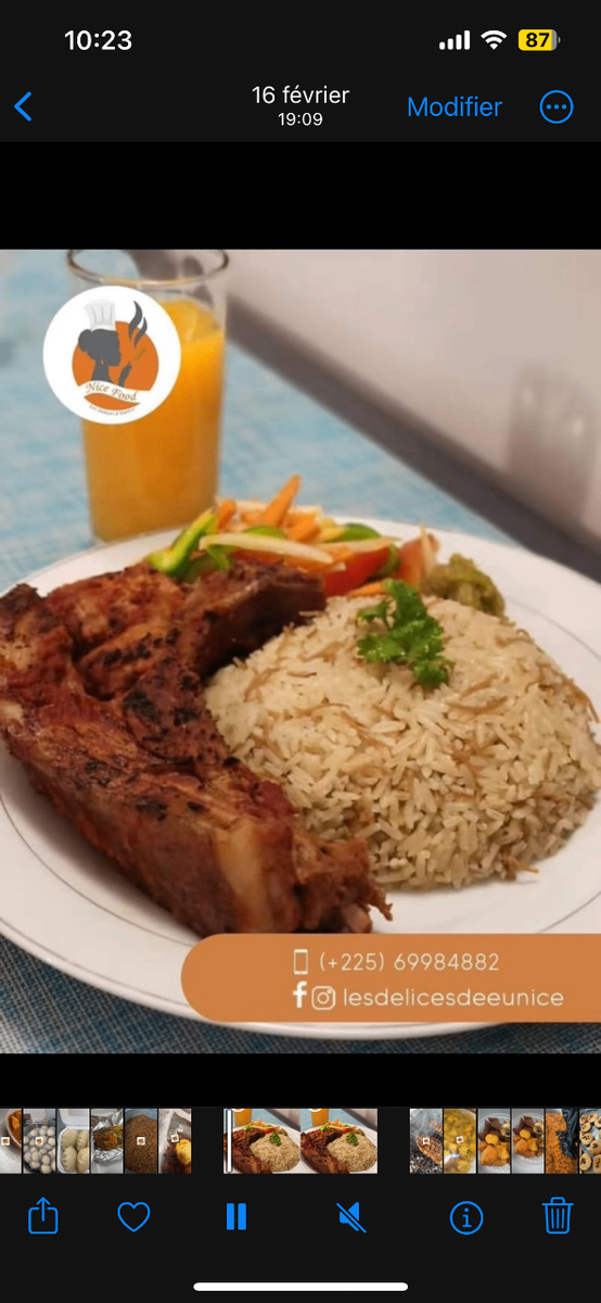 Dégustez un délicieux plat de riz parfumé accompagné de viande grillée juteuse, parfait pour un déjeuner ou un dîner satisfaisant. Accompagné de légumes frais, ce repas vous garantit une expérience culinaire inoubliable. Idéal pour les amateurs de cuisine africaine.