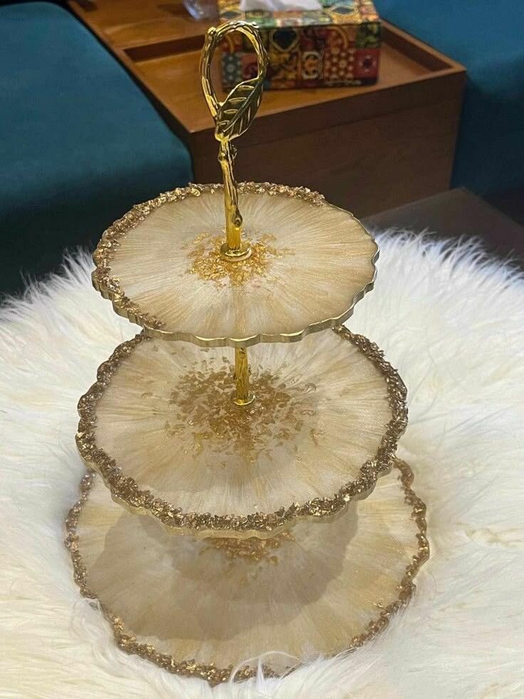 "Handmade resin tier tray perfect for organizing, serving, or decorating. Durable, stylish, and customizable. Ideal for vanity, desserts, jewelry, and home decor."