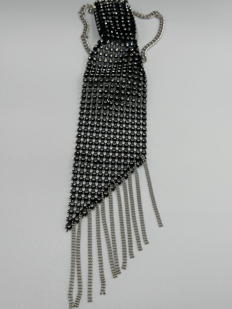 Elevate your style with this dazzling rhinestone fringe necklace. Perfect for evening wear or special occasions, it adds a glamorous touch to any outfit. The cascading design creates a stunning statement look.