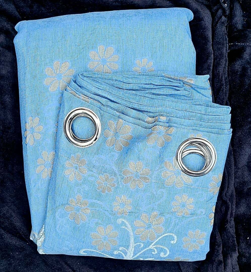 Rideau bleu avec œillets