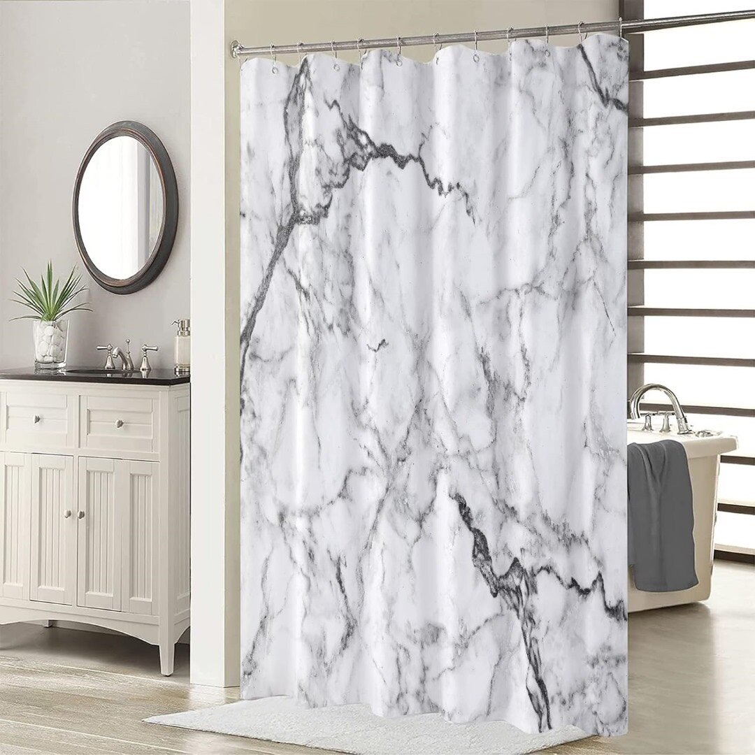 rideaux de douche de salle de bain sont fabriqués à 100 % en polyester. Ce tissu est doux, lisse, imperméable, sans décoloration, lavable en machine, réutilisable, durable, à séchage rapide, ventilé et perméable à la lumière et non aux personnes et pratique à ranger et résistant aux déchirures.