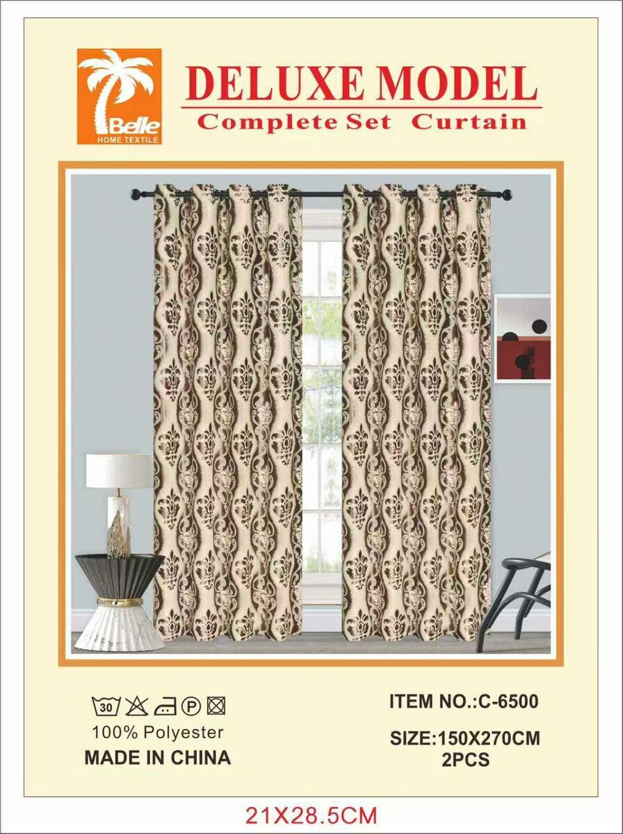 Ensemble de rideaux Deluxe modèle complet en polyester de haute qualité, élégants et durables. Parfaits pour décorer vos fenêtres avec style. Fabriqués en Chine, disponibles en taille 150x270cm, lot de 2 pièces.