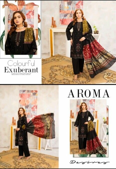 *. Riwayt* Embroidered lawn 3pcs Embroidered lawn shirt Plan cotton trousers Jecrad lawn duppta