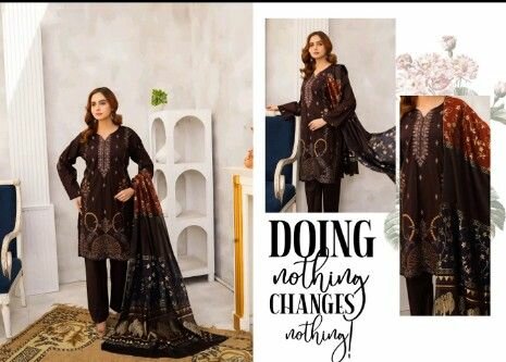 Embroidered lawn 3pcs Embroidered lawn shirt Plan cotton trousers Jecrad lawn duppta