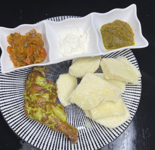 Igname bouillie au poulet