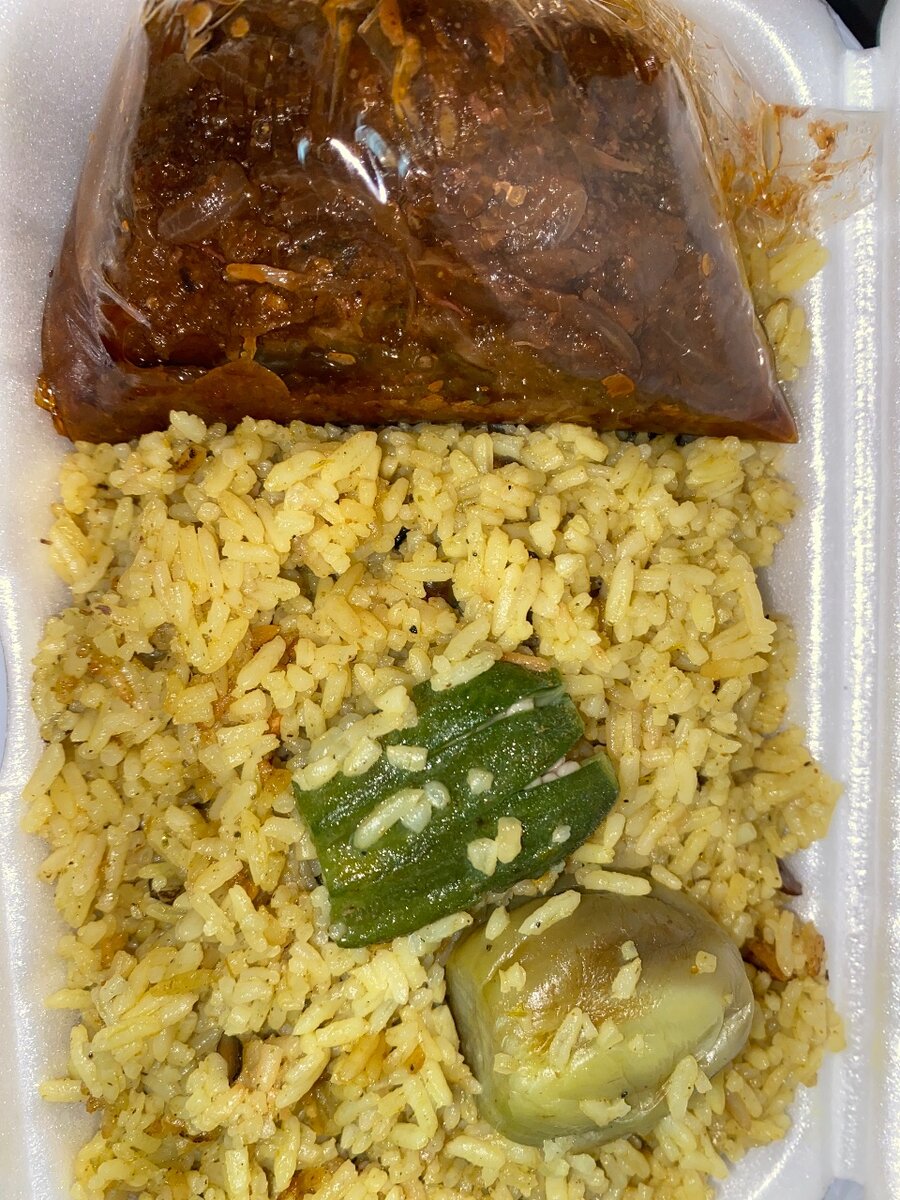 Savourez ce délicieux plat de riz épicé accompagné d'une sauce savoureuse et de légumes. Un choix parfait pour un repas réconfortant et exotique, idéal pour découvrir les saveurs authentiques de l'Afrique.