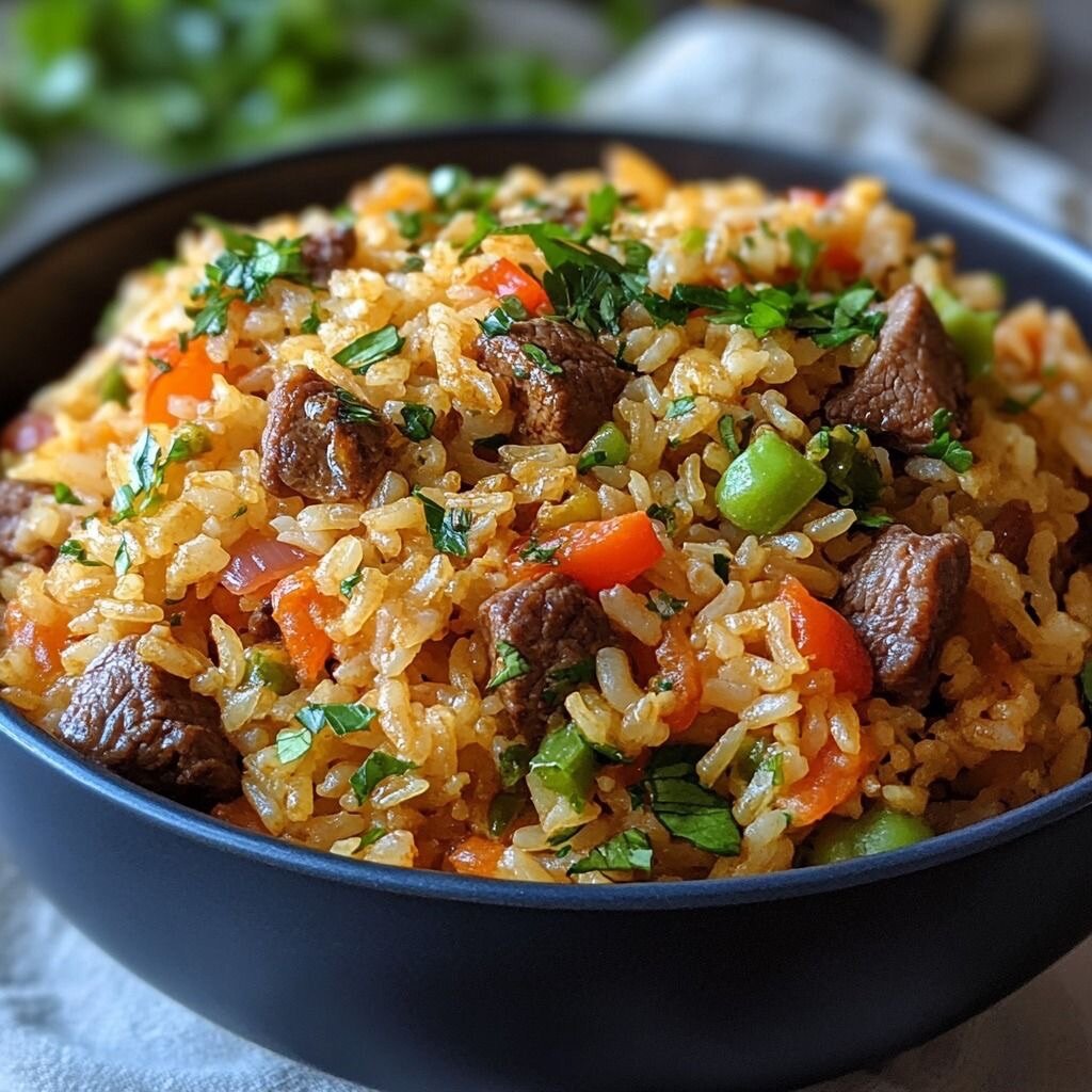 Découvrez un délicieux riz cantonais au boeuf, parfait pour un repas copieux. Ce plat est préparé avec des morceaux tendres de boeuf, des légumes frais et des épices savamment équilibrées pour une explosion de saveurs. Idéal pour un dîner en famille ou entre amis, ce riz pilaf saura ravir vos papilles. Facile à préparer, il est le choix parfait pour les amateurs de cuisine authentique. Essayez-le aujourd'hui et apportez une touche d'exotisme à votre table!