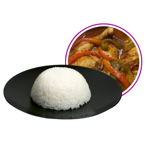 Savourez notre riz parfumé accompagné d'une sauce exotique aux légumes grillés et morceaux tendres de Poulet. Parfait pour un repas rapide et délicieux fait maison. Idéal pour les amateurs de cuisine savoureuse et riche en saveurs.