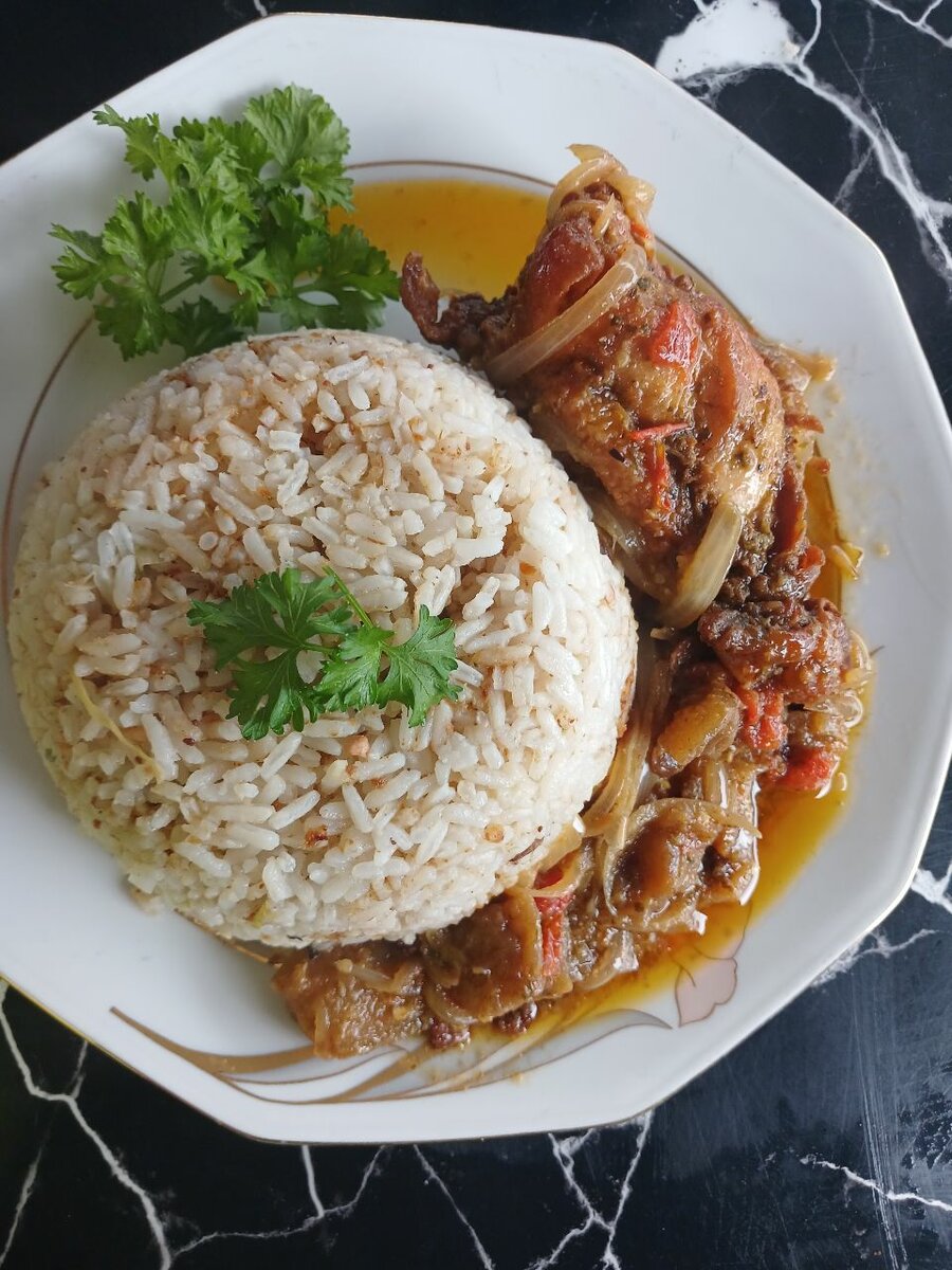 Découvrez notre délicieux plat de riz soumara accompagné de poulet épicé cuit à la perfection. Idéal pour un déjeuner gourmand ou un dîner savoureux. Ce mélange d'épices et d'arômes saura ravir vos papilles et apporter une touche exotique à votre table. Une expérience culinaire incontournable !
