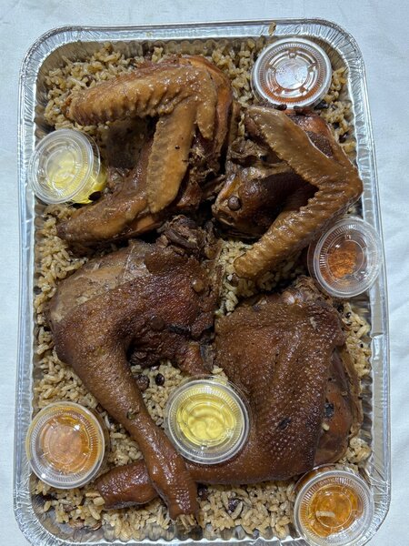 Savourez cette cuisse de poulet fumé, accompagnée d'un délicieux riz parfumé aux épices. Parfait pour un repas rapide et satisfaisant, idéal pour une expérience culinaire exotique à la maison ou au bureau. Accompagné de sauces pour une touche de saveur supplémentaire.
