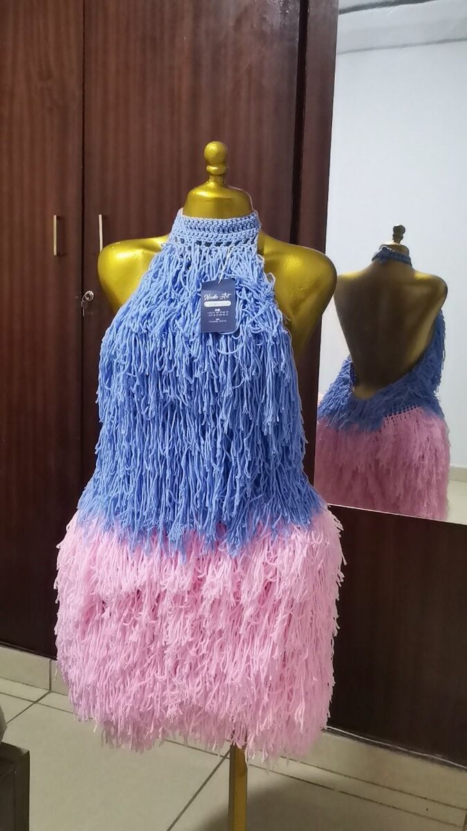 Découvrez cette robe élégante à franges bleues et roses, parfaite pour une soirée unique. Son design original captivera tous les regards et vous apportera une touche d'audace. Idéale pour des événements spéciaux et des sorties.