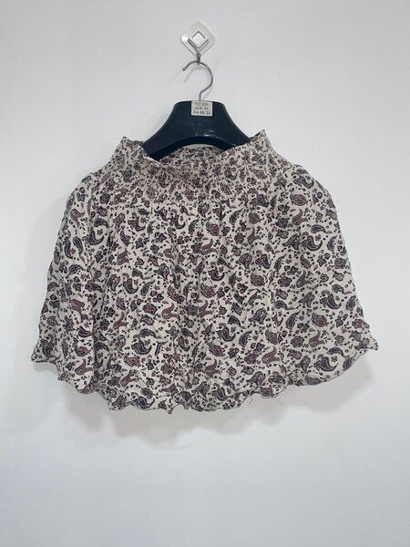 Ensemble T-shirt bleu à manches lanternes et short gris avec imprimé