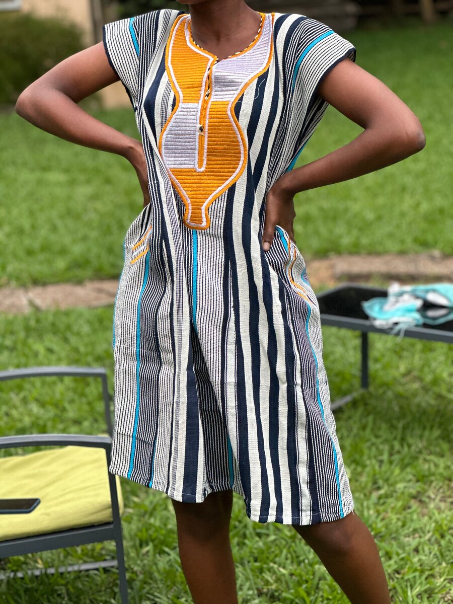 Découvrez cette robe en pagne rayée aux motifs africains vibrants. Parfaite pour les journées ensoleillées, elle offre confort et style. Idéale pour une sortie décontractée ou une fête estivale. Ses couleurs vives et son design unique en font un choix incontournable pour se démarquer.
