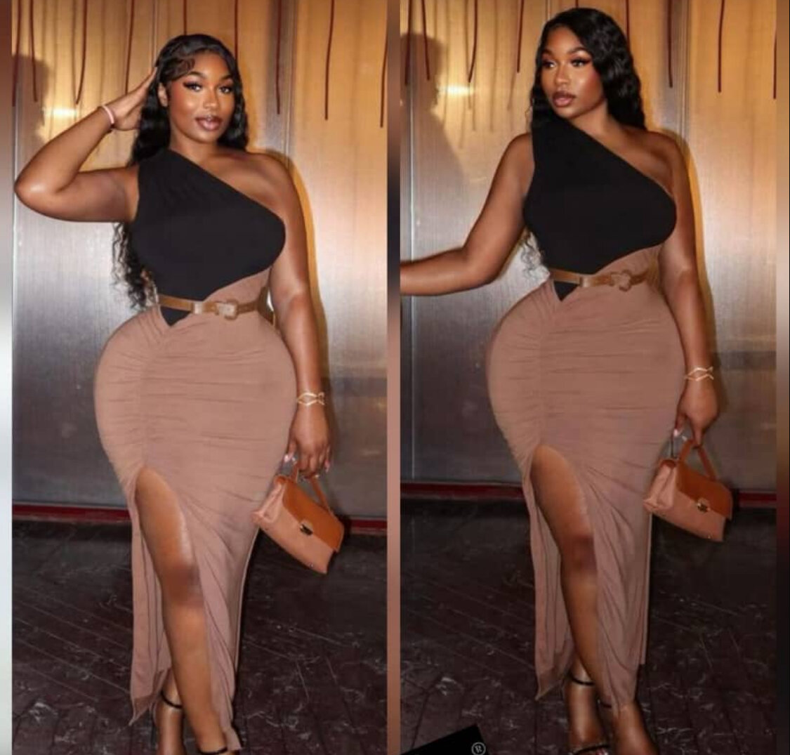 Découvrez cette robe asymétrique élégante, parfaite pour vos soirées. Avec sa coupe flatteuse et sa fente audacieuse, elle est idéale pour mettre en valeur votre silhouette. Fabriquée avec soin, elle allie confort et style, vous assurant une allure séduisante en toute occasion.