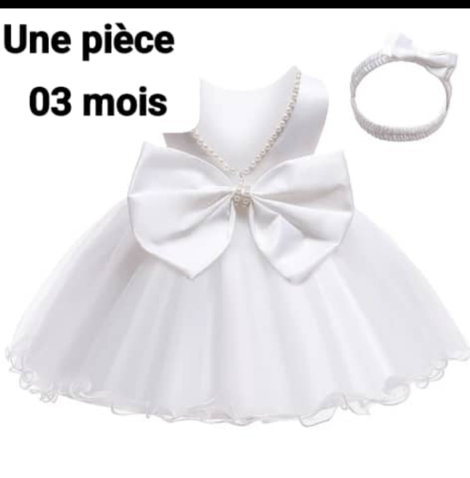 Sublime robe blanche pour bébé de 3 mois, idéale pour les cérémonies. Confectionnée avec des détails délicats et un joli nœud, elle est parfaite pour les occasions spéciales. Inclut un bandeau assorti.