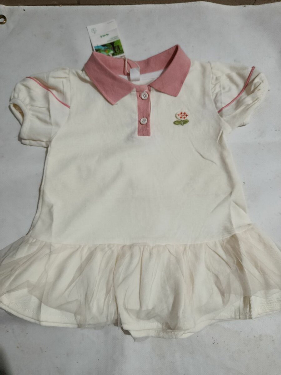 Robe bébé adorable avec col rose et motif fleuri. Parfaite pour les occasions spéciales ou quotidiennes. Tissu doux pour la peau délicate des bébés.