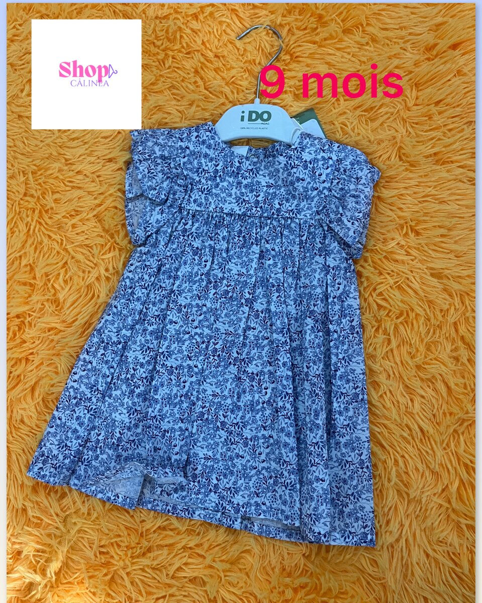 Ravissante robe en coton pour bébé de 9 mois, parfaite pour les journées ensoleillées. Motif floral élégant, facile à assortir pour une tenue adorable. Confort et style assurés.