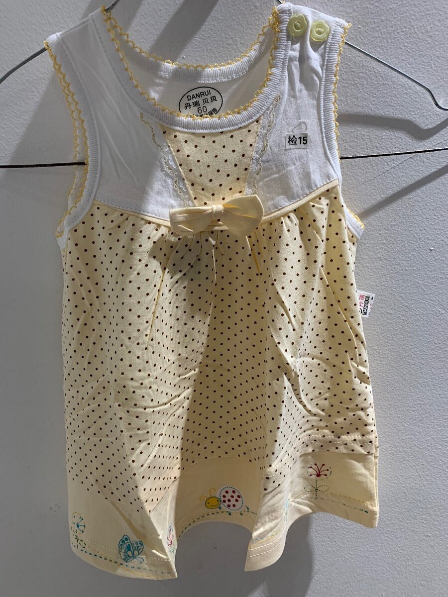 Adorable robe bébé à pois jaune avec un nœud élégant. Confectionnée en tissu doux pour le confort de votre enfant. Idéale pour les événements spéciaux ou une tenue quotidienne charmante.