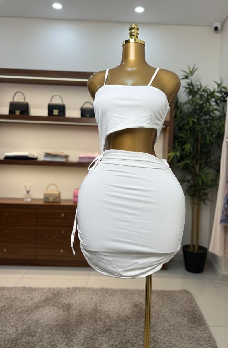 Robe élégante court blanc pour femme. Conçu en matière confortable. Idéal pour une soirée ou une sortie en ville.