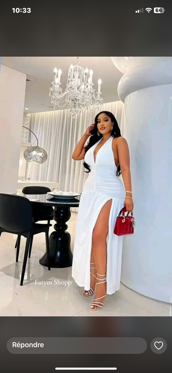 Découvrez cette somptueuse robe blanche avec une coupe fendue audacieuse, idéale pour des soirées élégantes. Conçu pour mettre en valeur votre silhouette, elle offre un style glamour et sophistiqué. Parfaite pour une occasion spéciale ou une soirée chic, cette robe attire tous les regards.