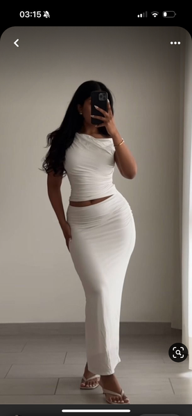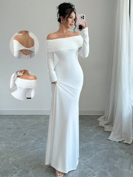 Robe blanche off-shoulder élégante
