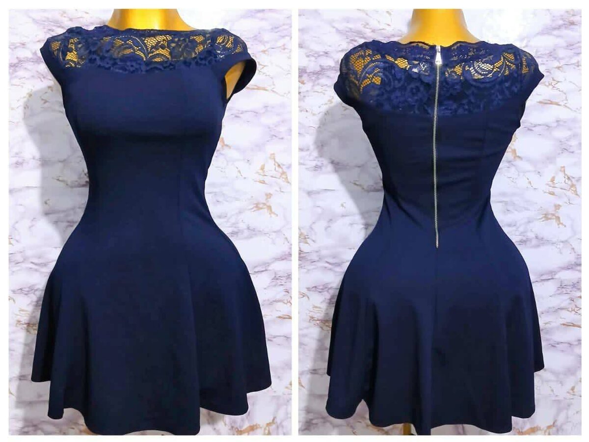 Robe chic en dentelle bleue, idéale pour soirées et événements spéciaux. Design flatteur avec fermeture éclair au dos, confectionnée avec soin pour un look impressionnant