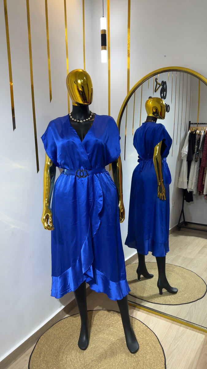 Élégante robe bleue New Look en satin, idéale pour une soirée ou un événement spécial. Cintrée à la taille, elle sublime la silhouette avec sa ceinture chic. Un choix parfait pour une allure sophistiquée et féminine.