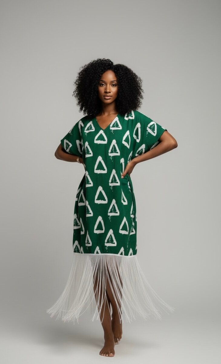 Découvrez cette robe bohème à motifs géométriques verts et blancs, parfaite pour une allure chic et décontractée. Ses franges originales ajoutent une touche unique, idéale pour toutes les occasions estivales. Un choix élégant et confortable pour toutes vos sorties !