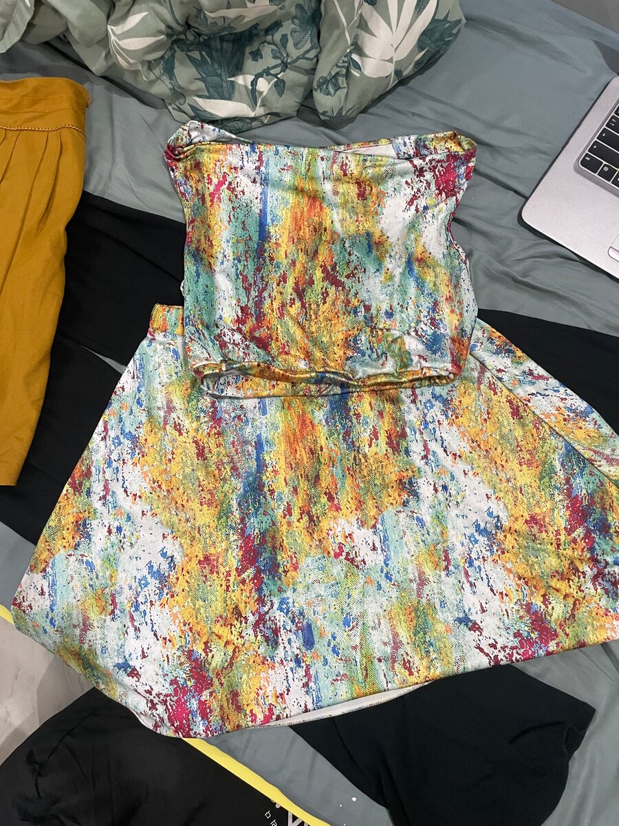 Éblouissez avec cette robe bustier à motif coloré. Parfaite pour les soirées estivales et les événements spéciaux. Sa coupe flattera votre silhouette tout en ajoutant une touche d'audace à votre garde-robe. Portez-la avec vos accessoires préférés pour un look complet et tendance.