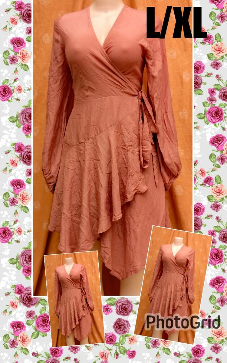 Découvrez cette robe cache-cœur à volants, parfaite pour les occasions spéciales. Avec sa coupe flatteuse et ses manches longues, elle est idéale pour une allure chic et féminine. Disponible en taille L/XL.